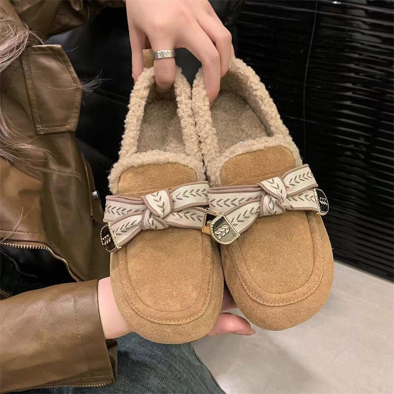 Winter Fluffy Shoes Winter Retro Birkenstocks Flat-soled Soft-soled Outer Wear Velvet Warm Cotton Shoes