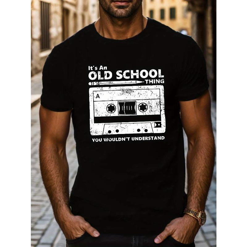 European Sizes IT'S AN OLD SCHOOL THING Print Short Sleeve Tees For Men, Casual Crew Neck T-Shirt, Comfortable Breathable T-shirt