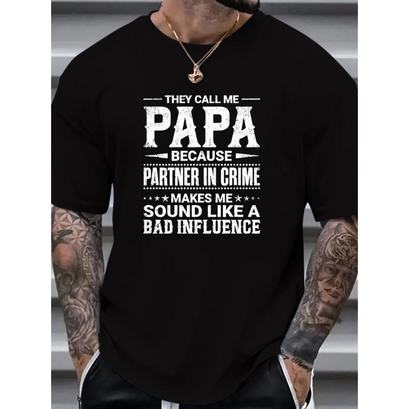 European Sizes Plus Size Men's Papa Graphic Print T-shirt, Casual Comfy Crew Neck Short Sleeve Tee For Summer Outdoor, Men's Clothing