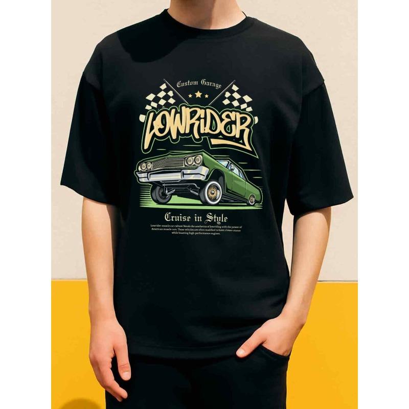 European Sizes Men's Lowrider Cruise Style T-Shirt Vintage 70s/80s Retro Car Design with Classic Lowrider