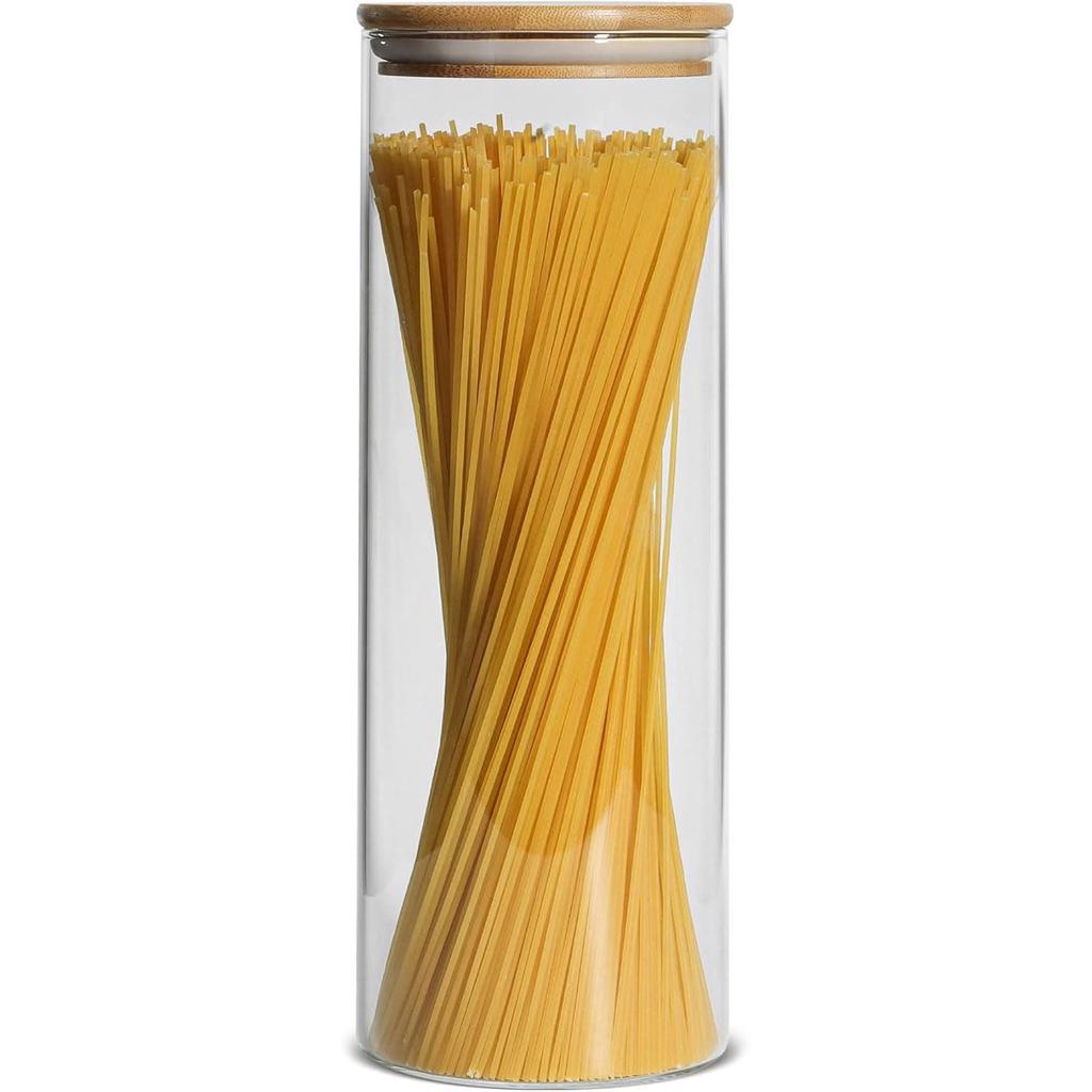 ComSaf Airtight Glass Canister, 2000ml, Pasta Storage Container with Bamboo Lid, for Grains, Coffee Beans, and More, Set of 1, Gift Idea