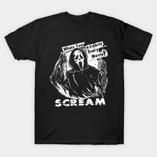 Men Black Print T-shirt Whats Your Favorite Scary Movie No-Cut Transfer Paper Print Cotton Tshirt