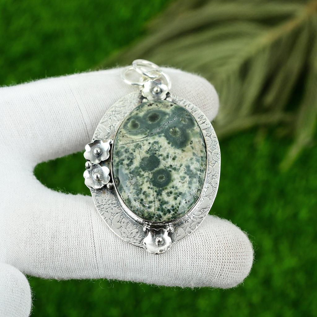 Natural Ocean Jasper Gemstone Pendant 925 Sterling Silver Indian Jewelry