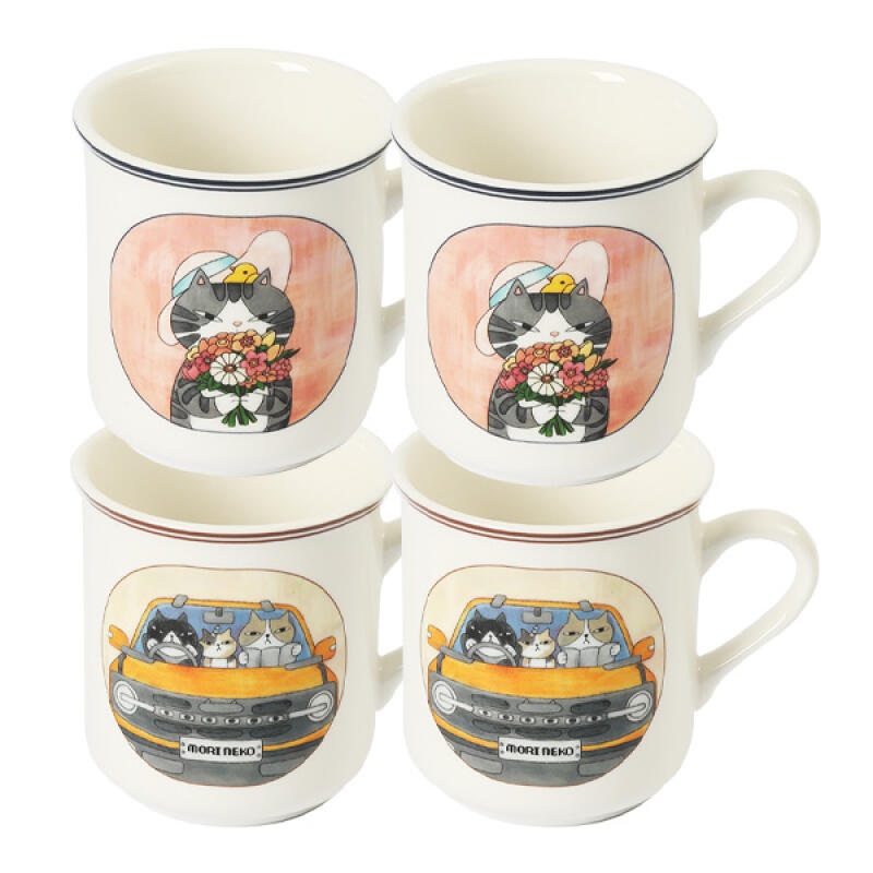 Morineko Cute Pop Art Cat Latte Coffee Mug 4P
