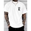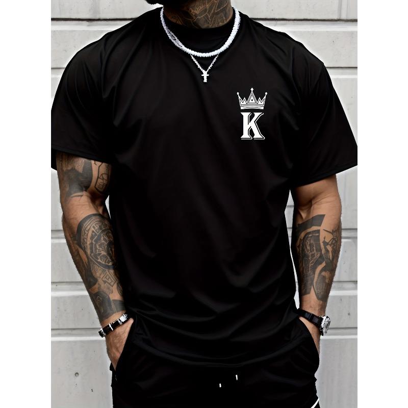 European Sizes Men'S Vintage Crown Print Short Sleeve Crew Neck Casual Sports T-Shirt - Polyester, Stretchy Knit Fabric,Summer Top with "K" Design