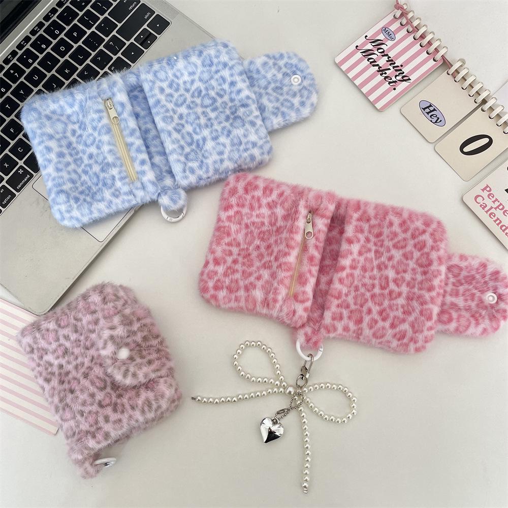 Pink Leopard Print Large Plush Storage Bag with Card Holder