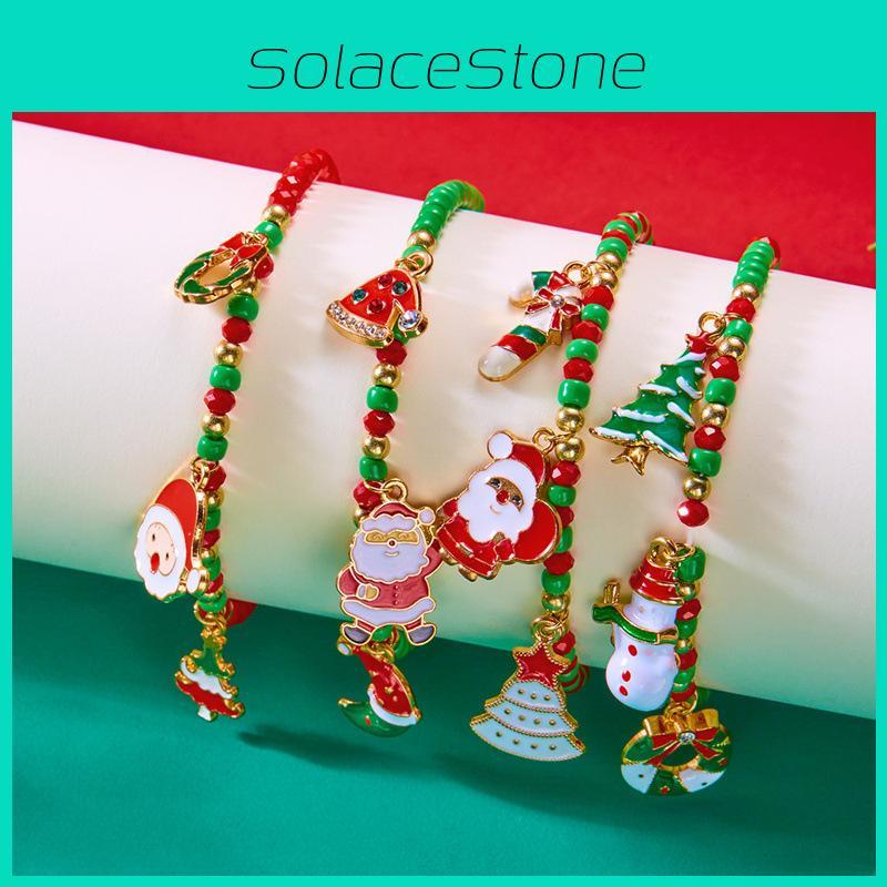 Christmas Bead Bracelet For Women With Santa Snowman Charms In Festive Gift Box