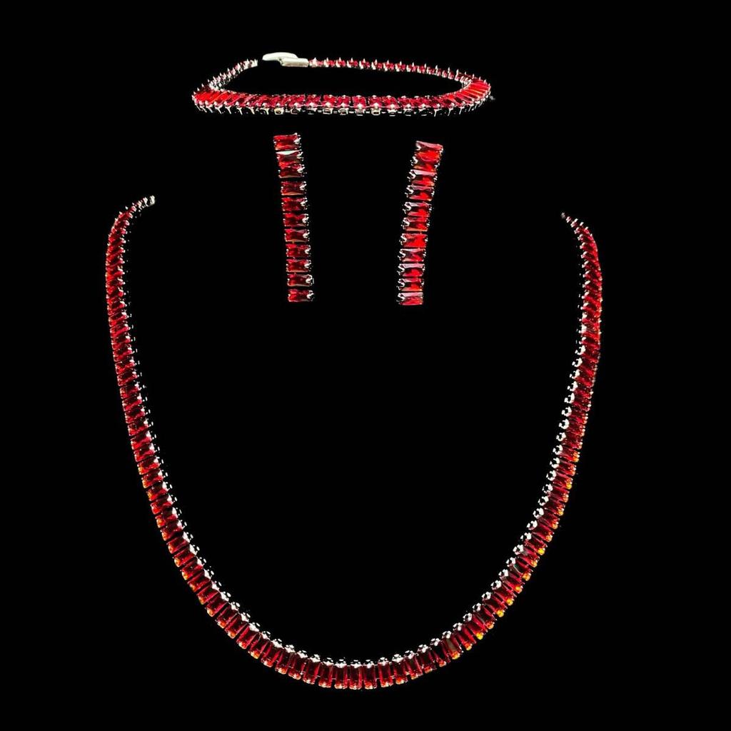 Multi-color Zircon Claw Chain Necklace & Colorful Zircon Choker Bracelet Earrings Set for Women