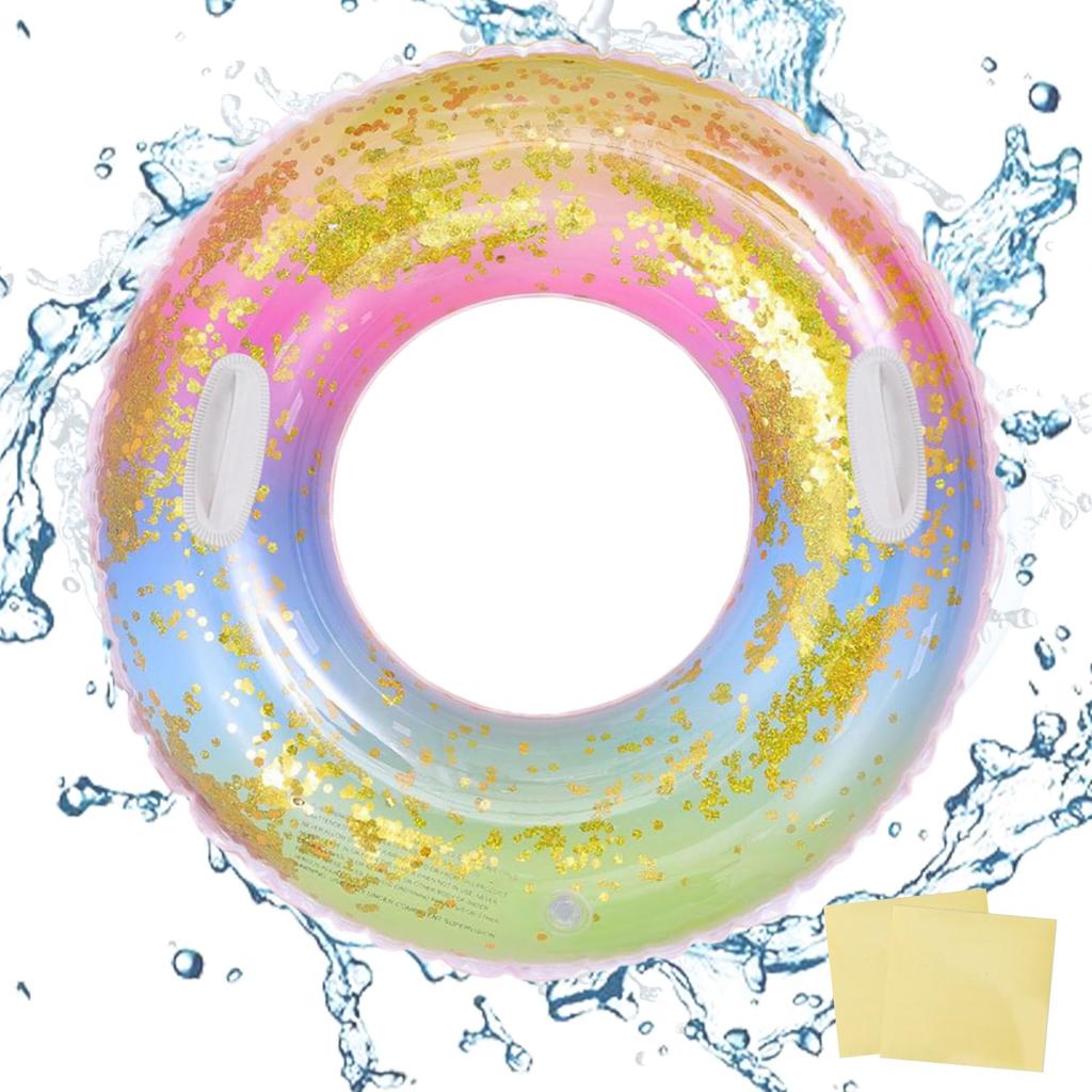 Float for Adults and Children, 90100cm, O-Shaped, with Handle, Sequin Rainbow Design, Leak-Resistant, Stable, Perfect for Summer Vacation, Beach,