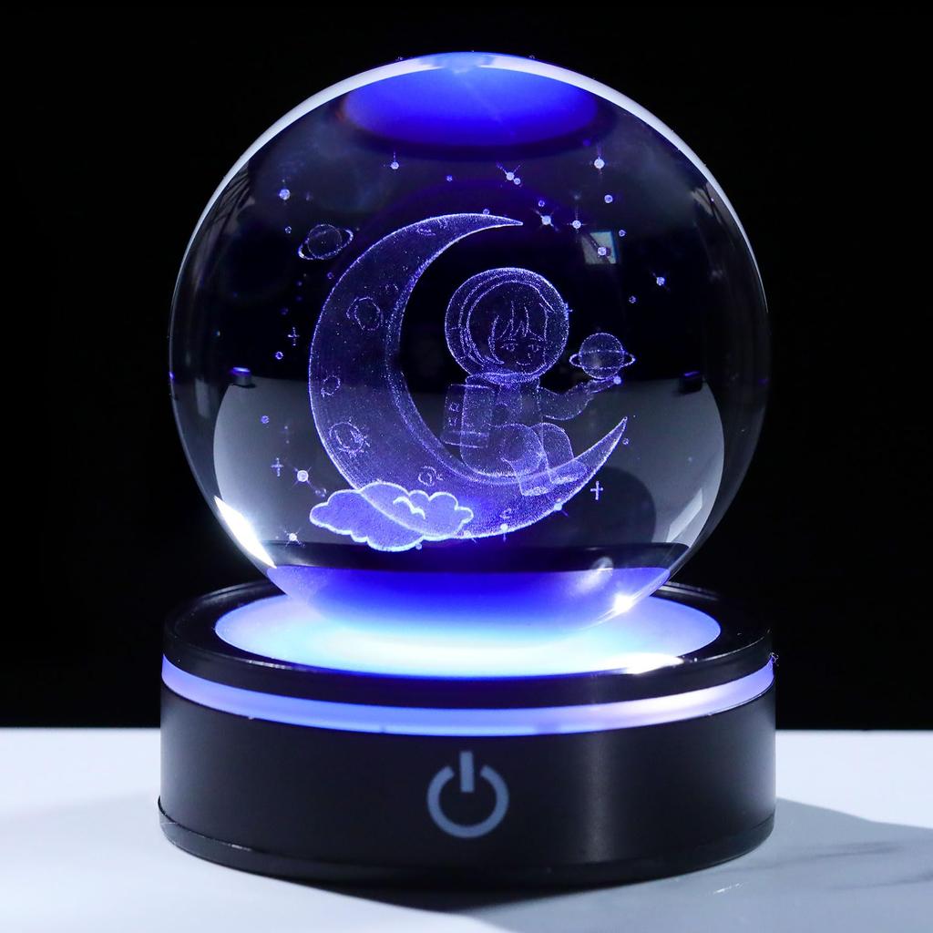 Qianwei 80mm Crystal Ball, Astronaut Design, Birthday Gift for Men and Women, Popular Decorative Item, Stylish K9 Crystal Ball, Glass Ornament,