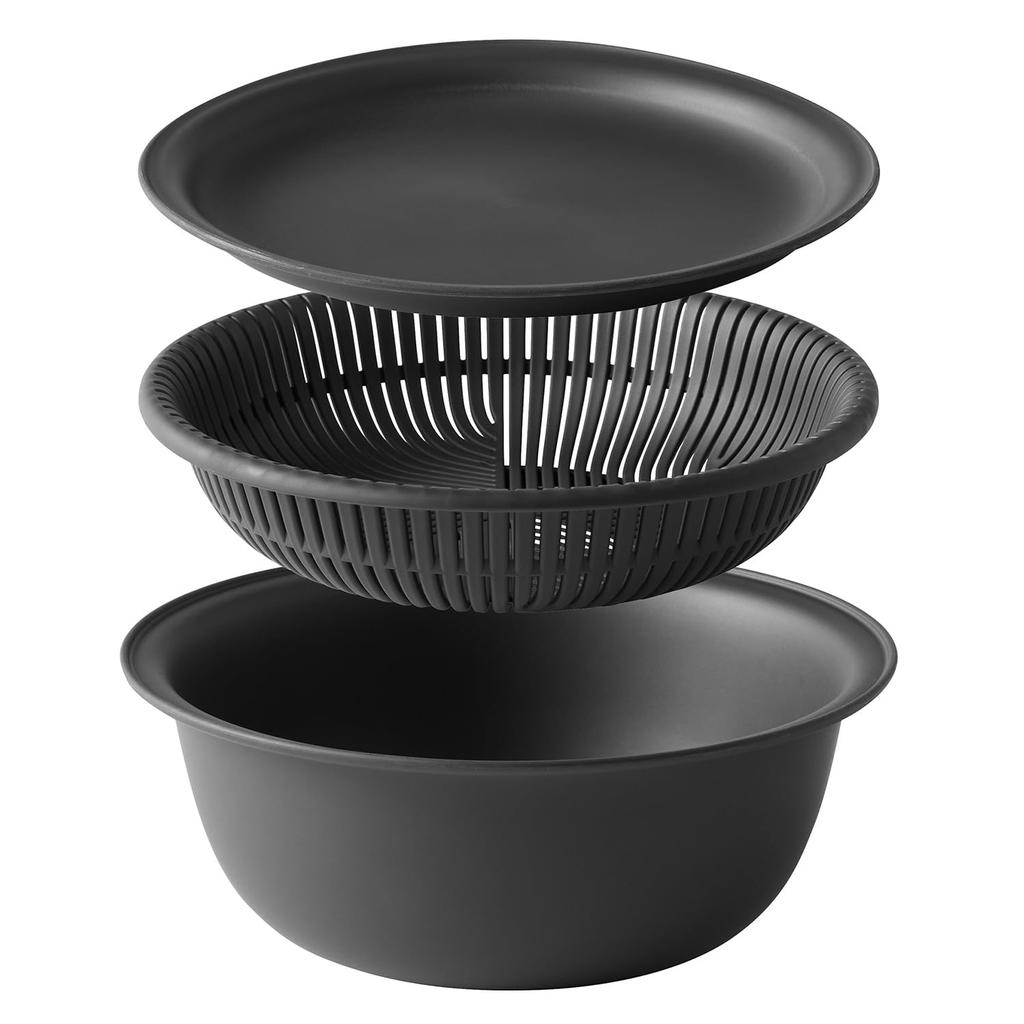 Marna 18cm Colander Bowl Set with Bowl Dark Marna Basics 3-Piece (Microwave/Heat-Resistant/Stackable) Tray, Colander, Set, Heat-Resistant Bowl,