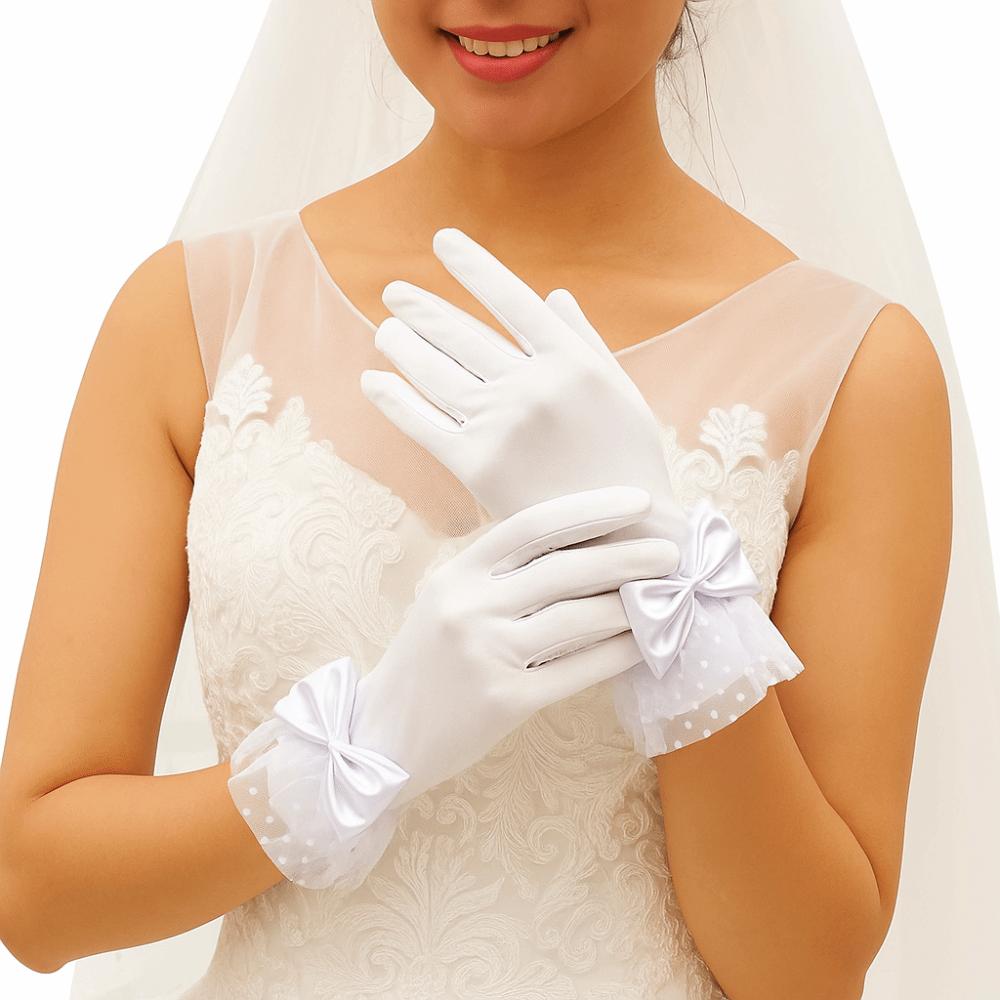 Polka Dot Wedding Bridal Gloves White Long Finger Mittens Retro Black Lace Gloves Funeral