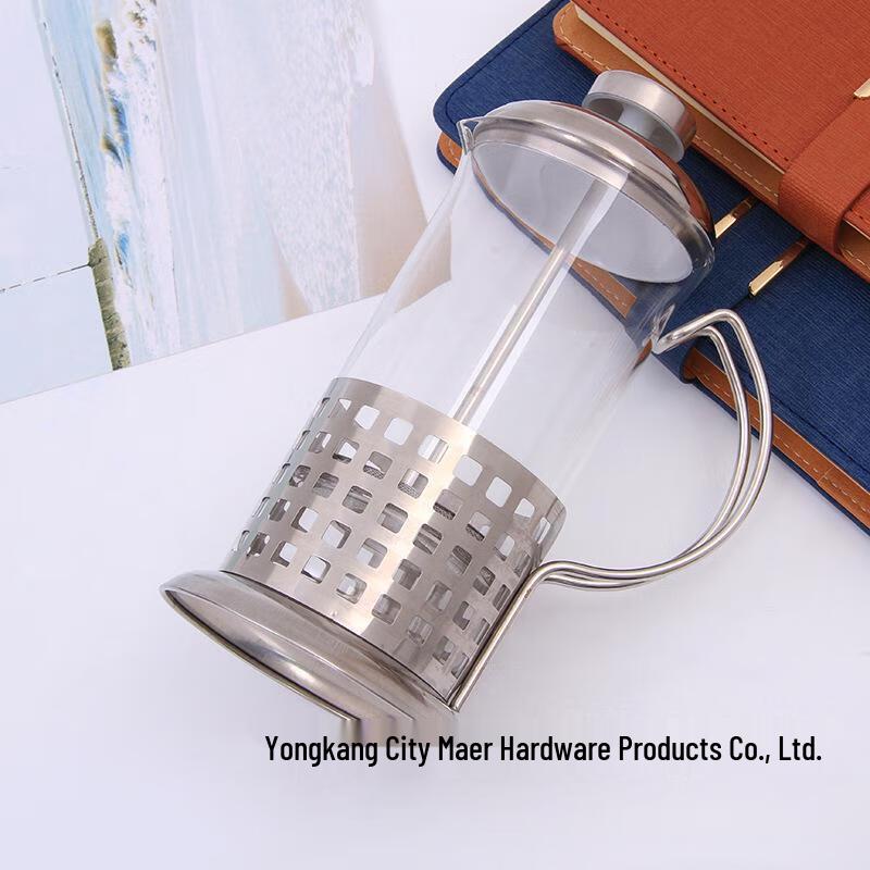 Xinfie Stainless Steel French Press Coffee Tea Maker - Grid Pattern - 600ML Double Pack