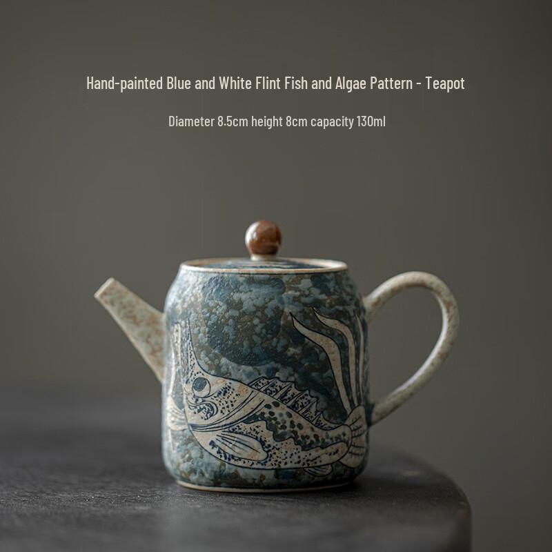 ModelHand-Painted Blue & White Flint Fish & Algae Pattern Teapot