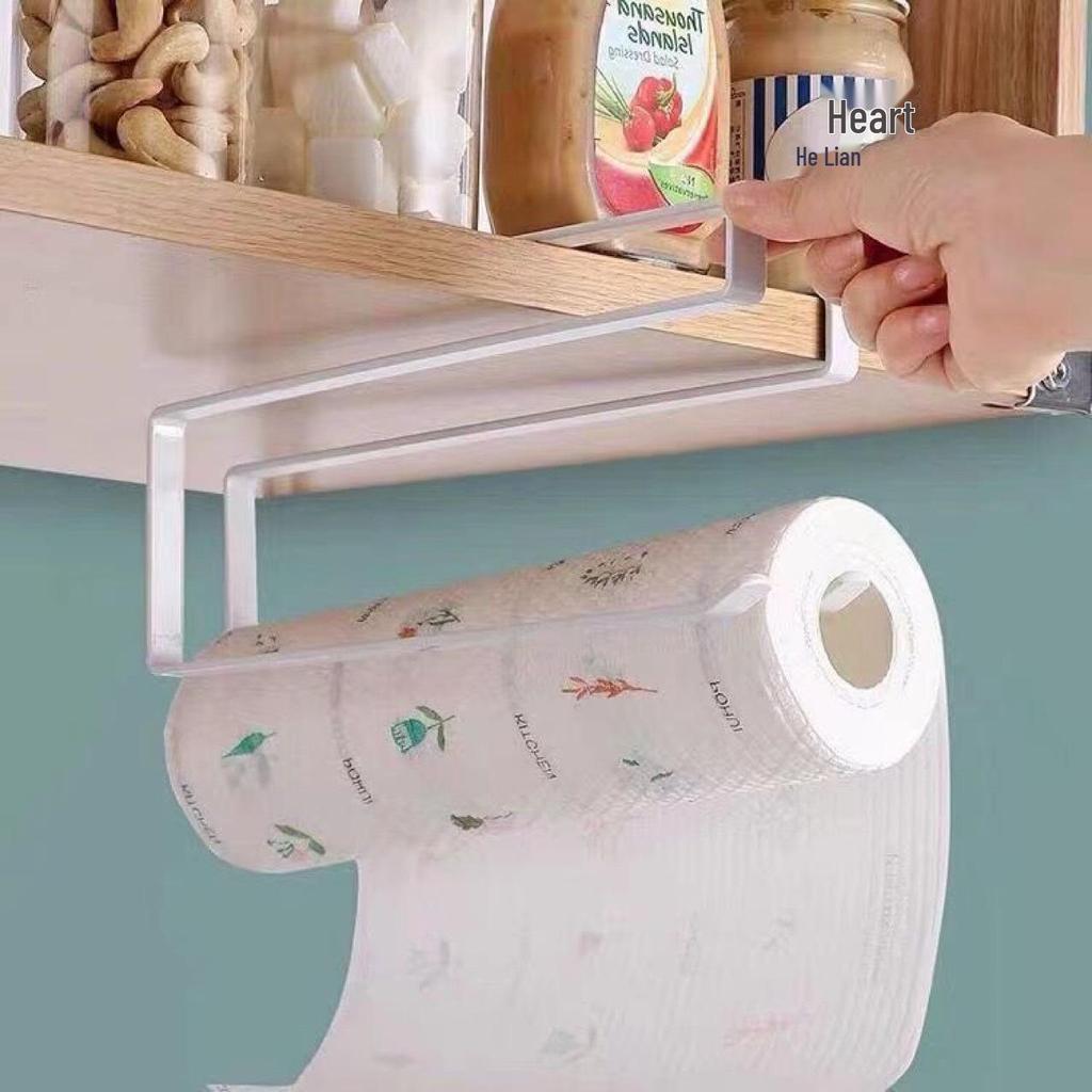 Cabinet Paper Towel Holder & Cling Film Rack | No-Punch Roll & Rag Hanging Rod