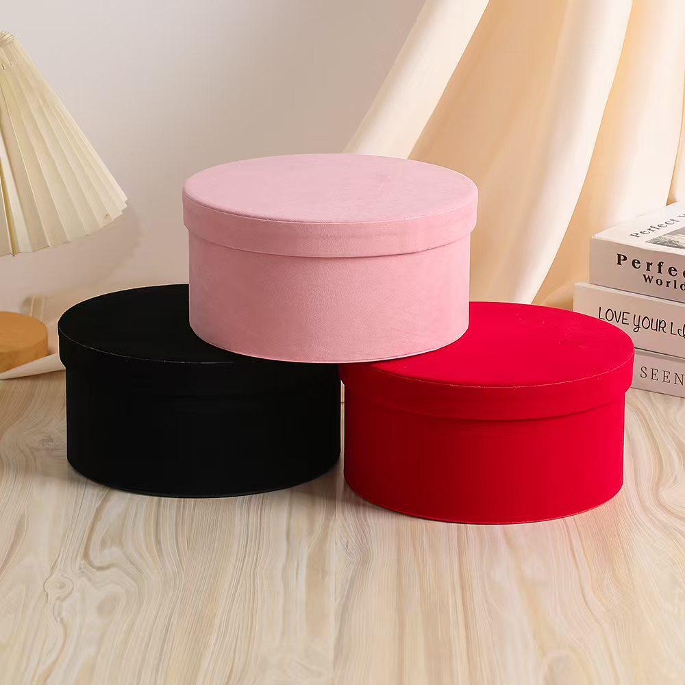 Retro Korean Velvet Round Gift Box - Black, Exquisite, and Empty