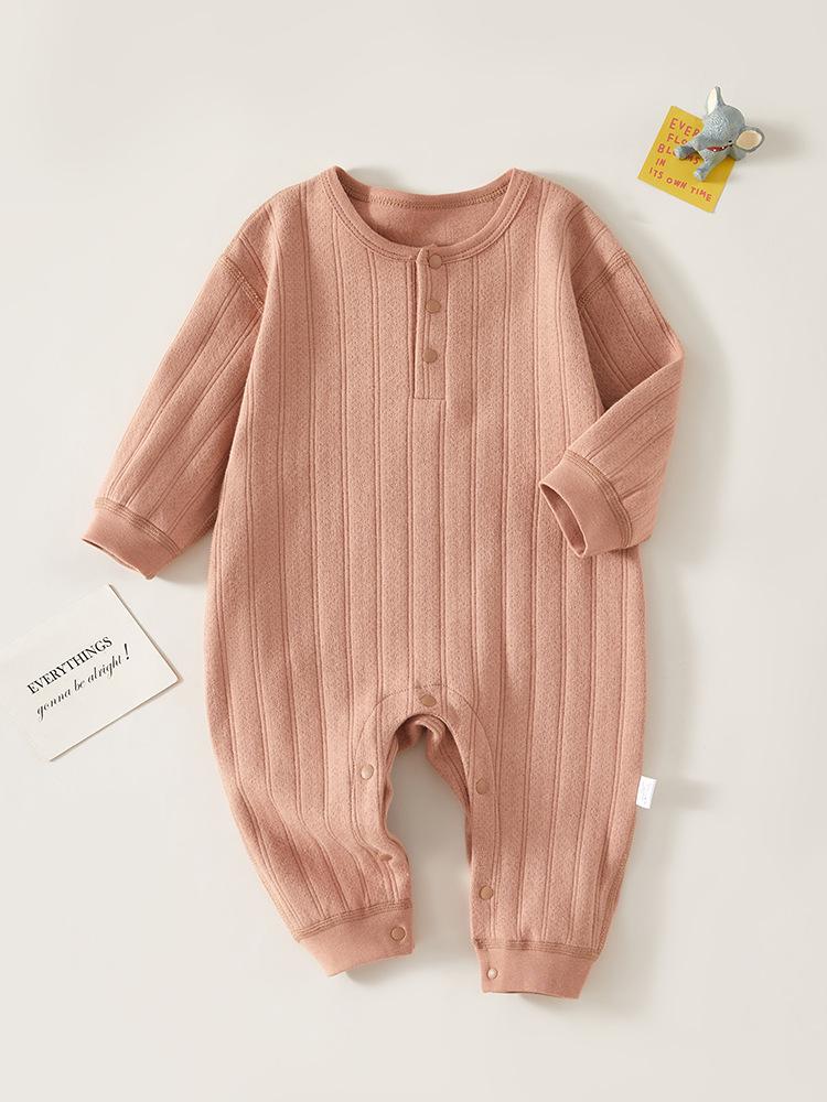 This baby bodysuit is crafted from 100% pure cotton, ensuring a soft and gentle touch against your newborn's delicate skin. Designed for the transitional seasons of spring and autumn, it features long sleeves to provide extra warmth and comfort. Perfect for layering or wearing on its own, this romper combines practicality and style for your little one's wardrobe.