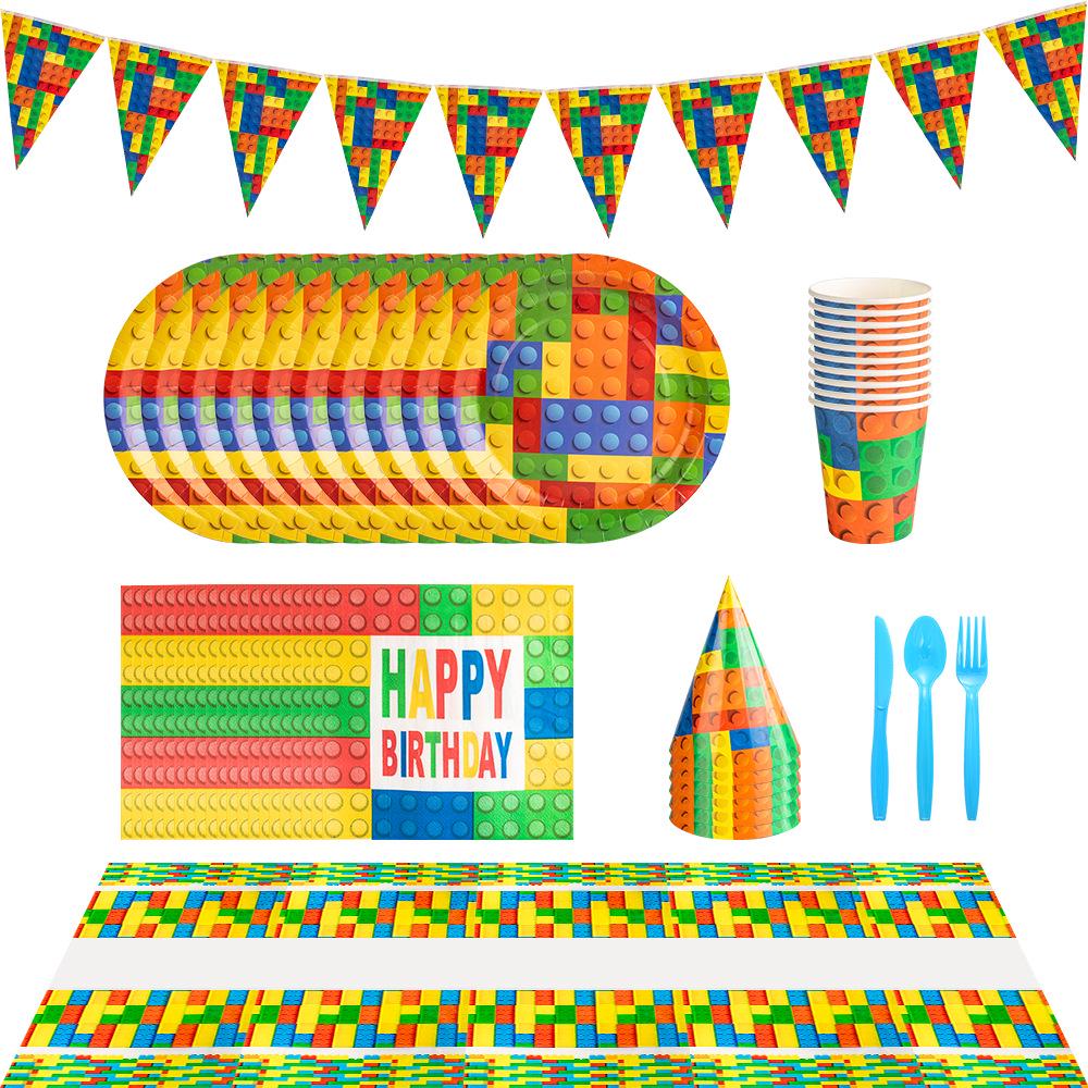Building Blocks Birthday Party Set: Children's Game Blocks & Disposable Tableware