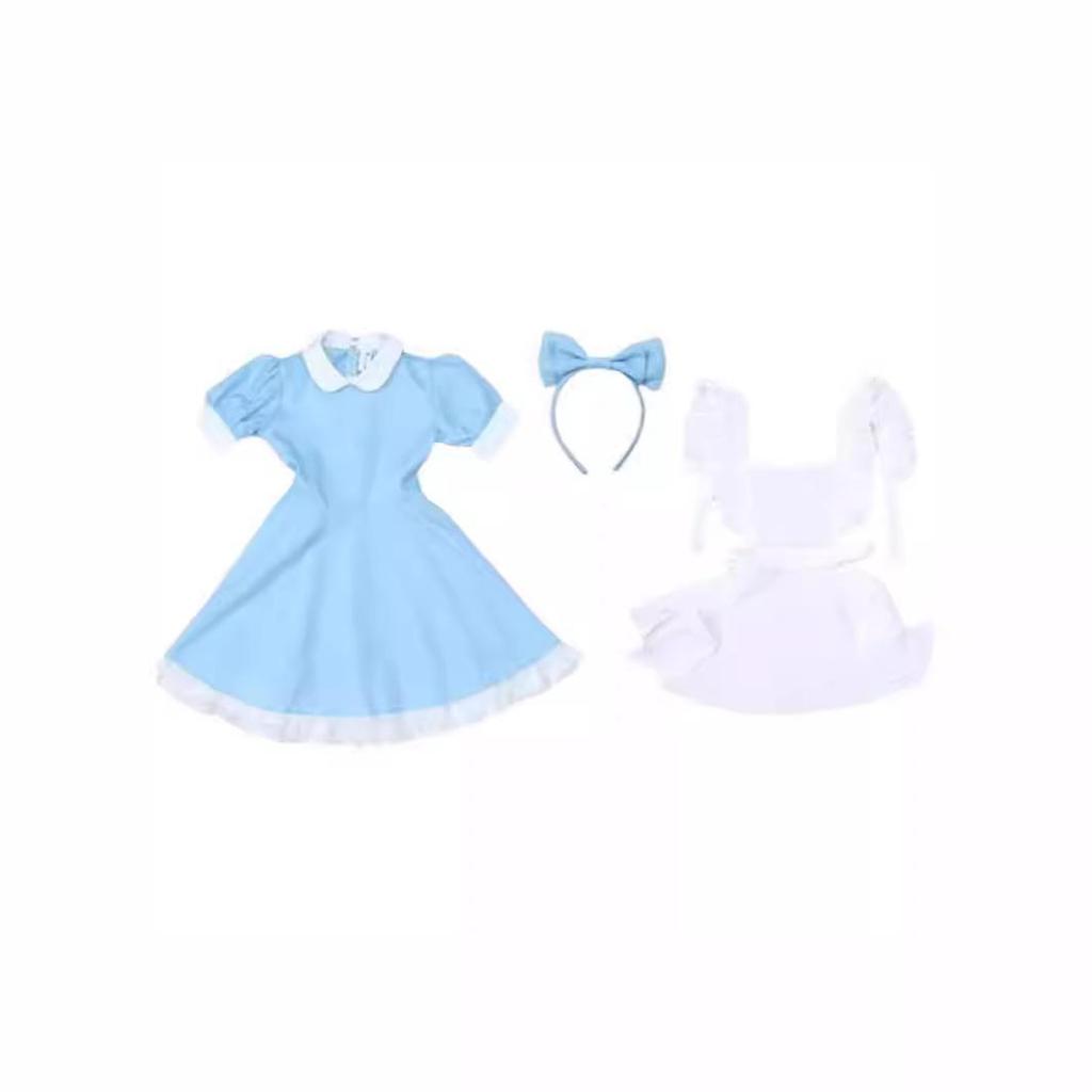 This delightful blue and white maid costume is perfect for bringing a touch of fantasy to any girl's birthday celebration. Crafted from soft and durable polyester, this dress ensures comfort and ease of movement during all-day wear. The costume captures the enchanting essence of a classic storybook character, complete with a charming headband to complete the magical look. Ideal for themed parties, dress-up events, or imaginative play, this dress promises to make any young girl feel like a princess in her own wonderland.