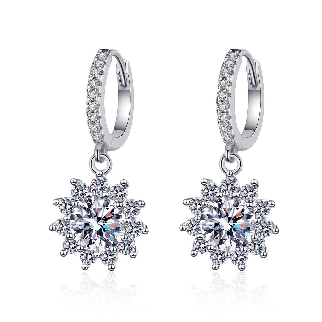 Gold-Plated Moissanite Sunflower Earrings with 925 Sterling Silver Needles & Zircon Backs for Women