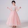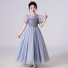 This enchanting dress is perfect for making any girl feel like a princess at weddings, formal events, or summer gatherings. Crafted from high-quality polyester, it features elegant sequin detailing that adds a touch of sparkle. The puff sleeves and long mesh skirt create a beautifully whimsical silhouette, while the delicate flower accents complete the look. Designed for comfort and style, this dress is ideal for flower girls or any special occasion.