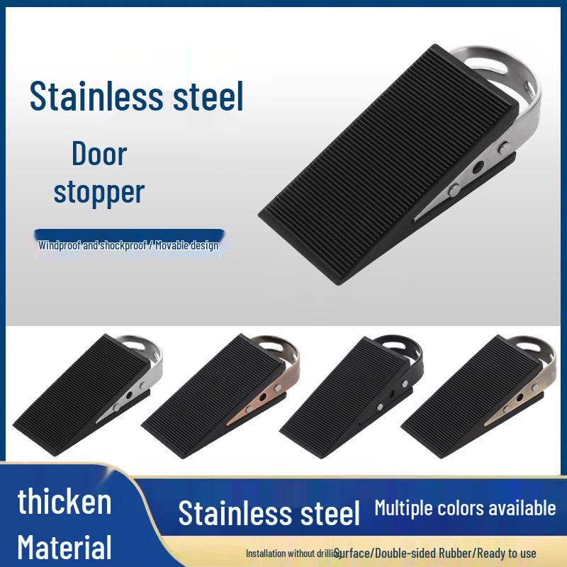 Windproof Stainless Steel Door Stopper: No-Drill Rubber Safety Blocker for Sliding Glass Doors, Anti-Collision Limiter.