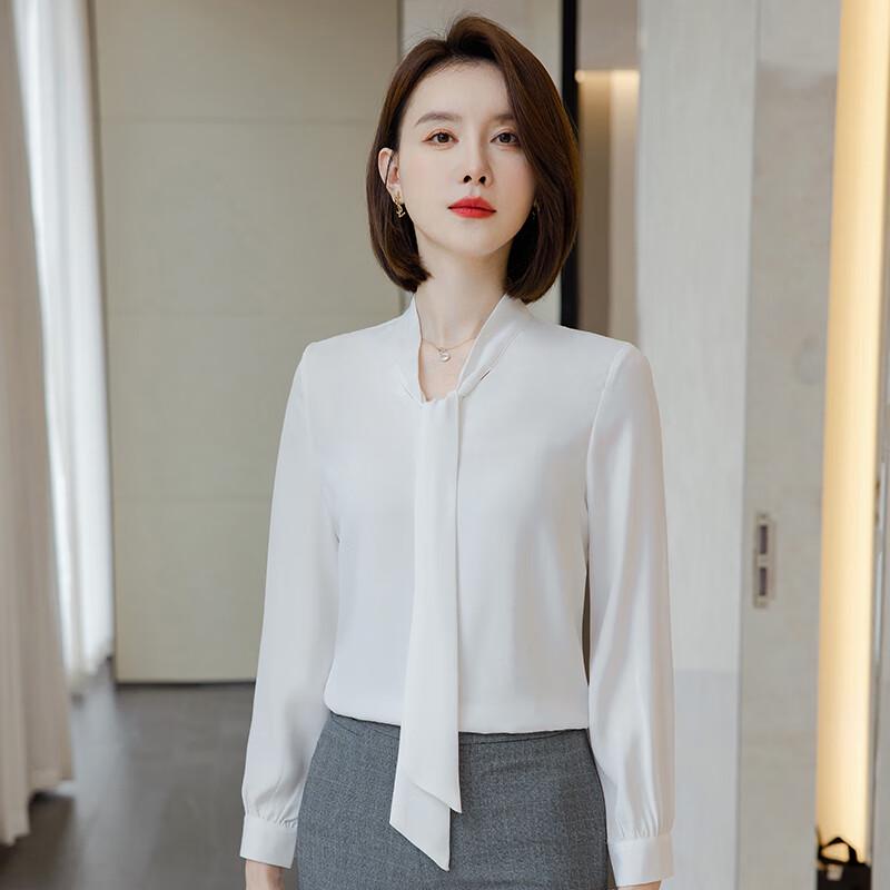 Women's Chiffon Long-Sleeve Tie-Neck Blouse