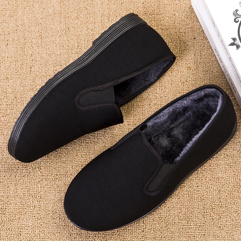 Winter Men's Thickened Velvet-Lined Breathable Cotton Cloth Shoes - Black Sole