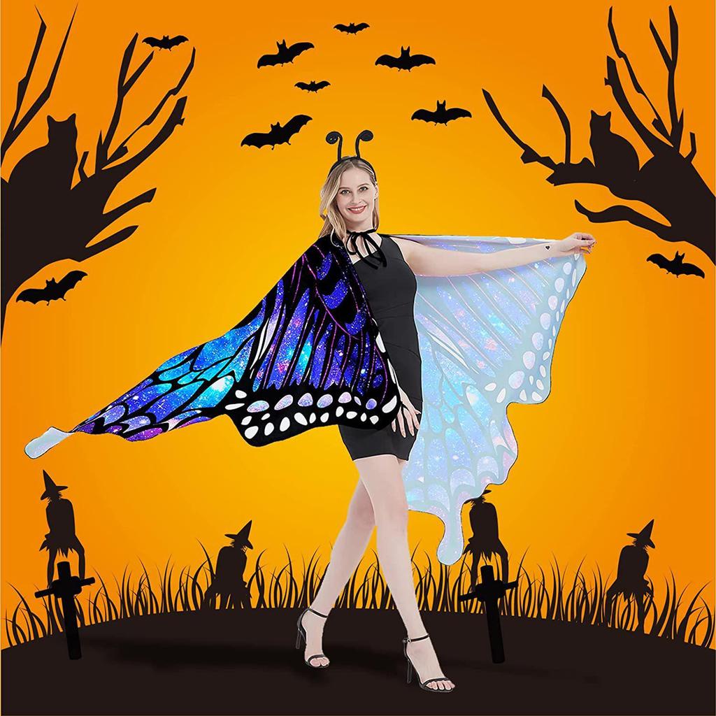 Rotating Butterfly Shawl: Halloween Belly Dance Gradient Wings Cloak