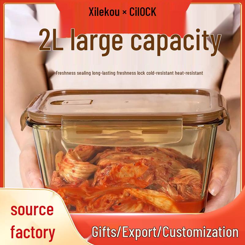 Xilekou Kimchi Box: Large Heat-Resistant Borosilicate Glass Storage for Microwave Use