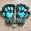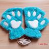 Women's Cute Cartoon Bear Paw Fingerless Plush Gloves with Hanging Neck