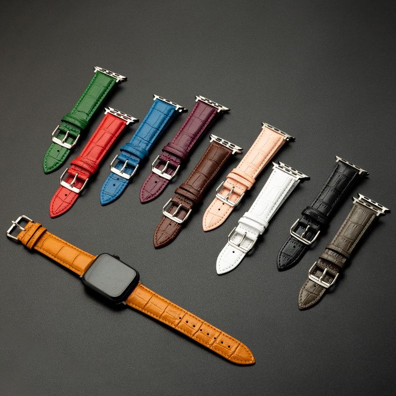 Genuine Leather Bamboo Grain Slim Apple Watch Band for Men & Women - iWatch Ultra Style