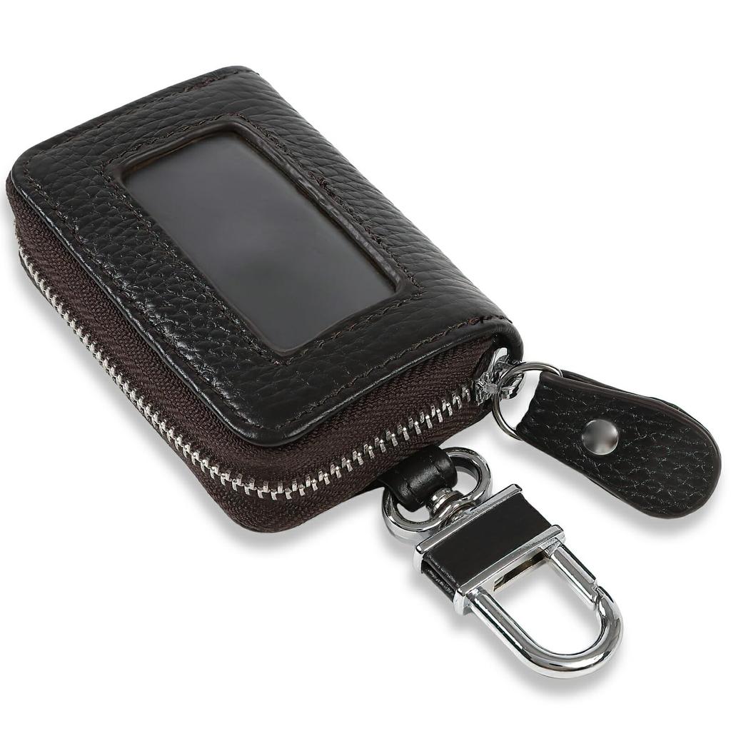 Negues Smart Key Case with Window and Anti-Slip Cushion, Compatible with Smart Keys, Car Leather, Dark Brown