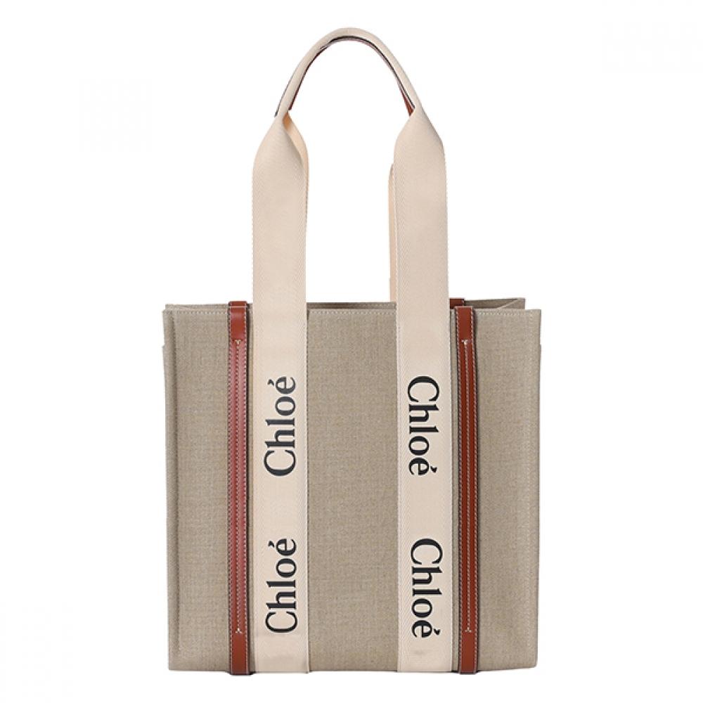 Product Description: The Chloé Woody Tote Bag is a large canvas tote bag primarily in beige color. Clearly identified by product number CHC24SS366I26 27S, the brand logo is elegantly displayed on the canvas. Made from natural linen material, it exudes luxurious texture and a natural atmosphere. It offers ample storage space while being lightweight, making it highly versatile for daily use. The tote bag design is easy to carry on the shoulder, satisfying both practicality and style.