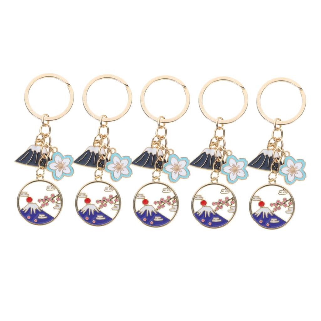 [FRCOLOR] Cherry Blossom Keychains, Set of 5, Enamel Flower and Mount Fuji Motif, Japanese Style, Zinc Alloy, Attachable To Bags, Keys, Wallets, and