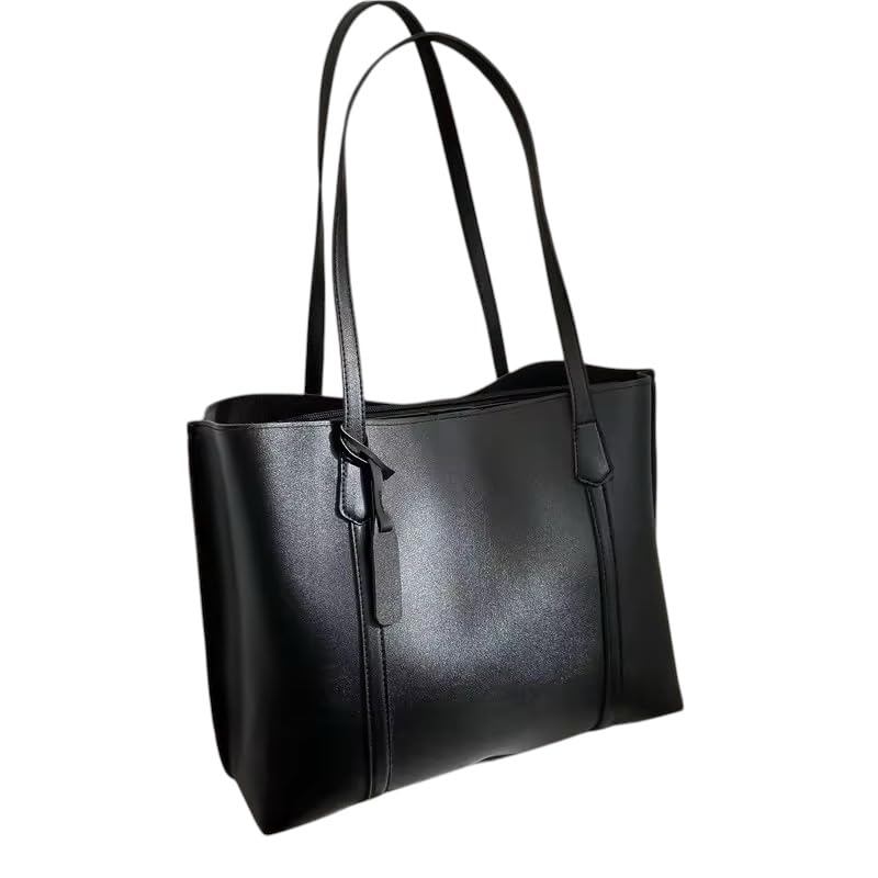 MIDOS Simple Leather-Look Tote Bag, Korean Style, with Interior Pocket, Black, for Commuting, Natural PU Leather, Women's Utility, Stylish,