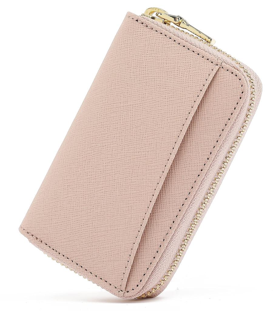 [honey&blue] Women's Bellows Card Case, Genuine Leather, YKK Zipper, Anti-Skimming, Coin Purse, Card Slots (Grayish Pink)