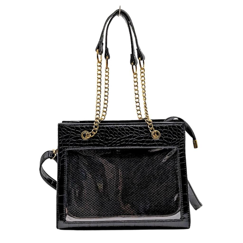 Harugio Ita Bag, Shoulder Bag, Small Tote Bag, Mini Tote Bag, 2-Way Crocodile Print Tote Bag, Shoulder Bag, Handbag, Black and White Chain, Gothic,