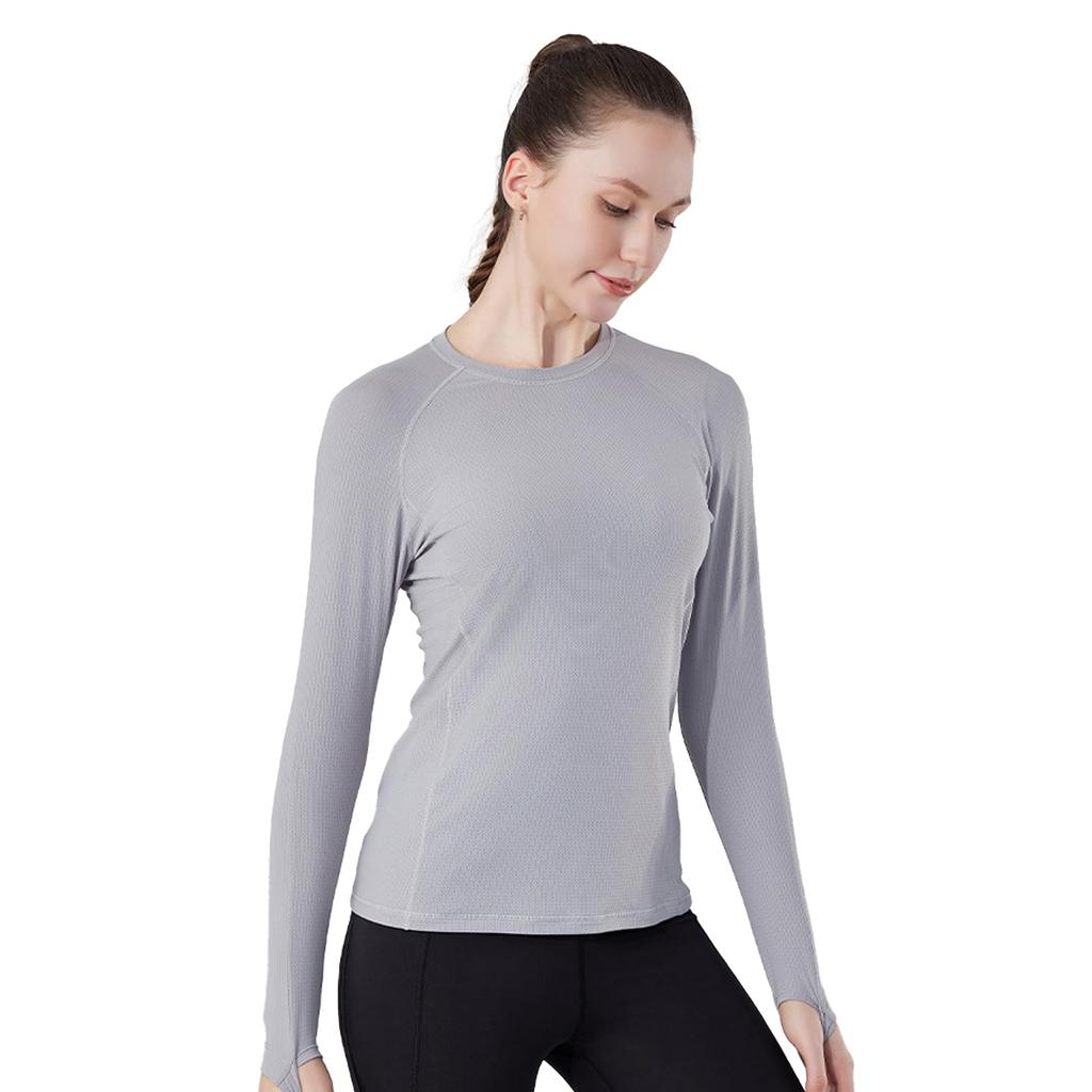 Karsaer Cooling Innerwear Sports Long Round Yoga Solid UV A0064 Women's T-Shirt, Sleeve, Sweat-Wicking, Quick-Drying, Neck, Top, Running, Training,