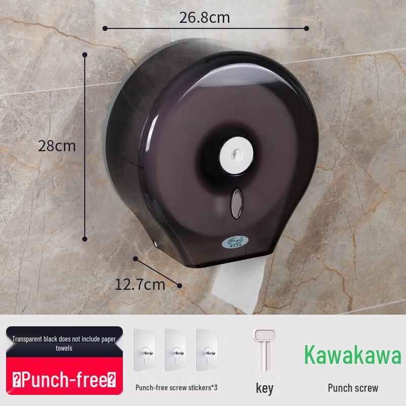 Black Transparent Punch-Free Large Roll Toilet Paper Dispenser