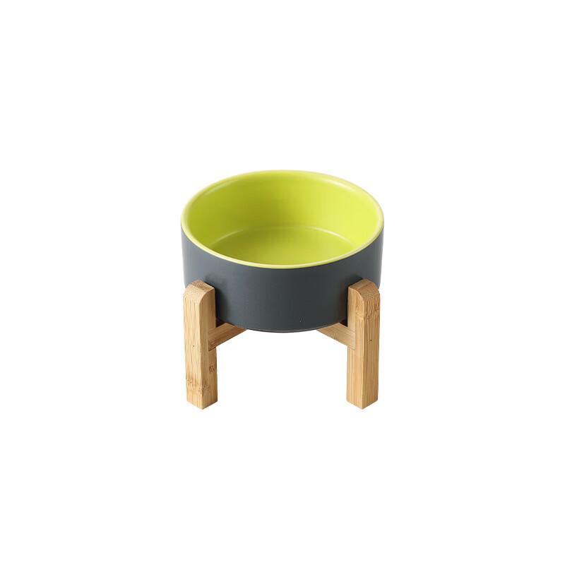 Ruhan Elevated Pet Food Bowl with Single Wooden Stand