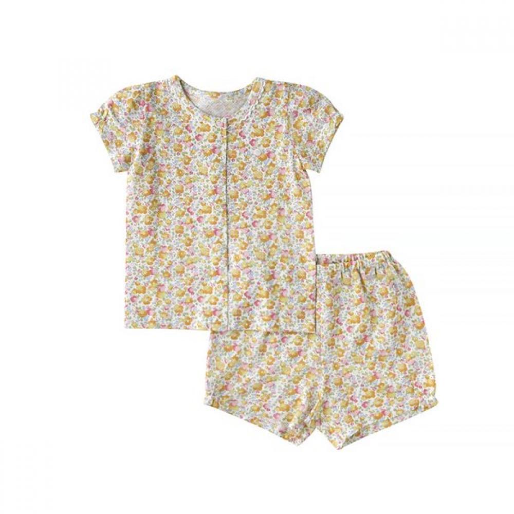 It is a short-sleeved item with the COOL COTTON line that is easy to close. It is a fabric woven with a breathable mesh structure using eco-friendly bamboo and cotton yarn made from pristine natural bamboo. It provides excellent breathability for children who are active and burn a lot of heat, and has antibacterial and deodorizing effects, making them clean and fresh to wear. The design matches multiple floral patterns with a luxurious pendant, making it a great gift item for babies.