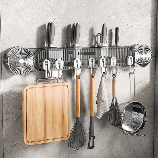 Multi-Functional Adjustable Curved Hooks: Large curved hooks securely hold kitchen spatulas, bathroom towels, and more; adjustable spacing fits various utensil sizes for flexible storage.