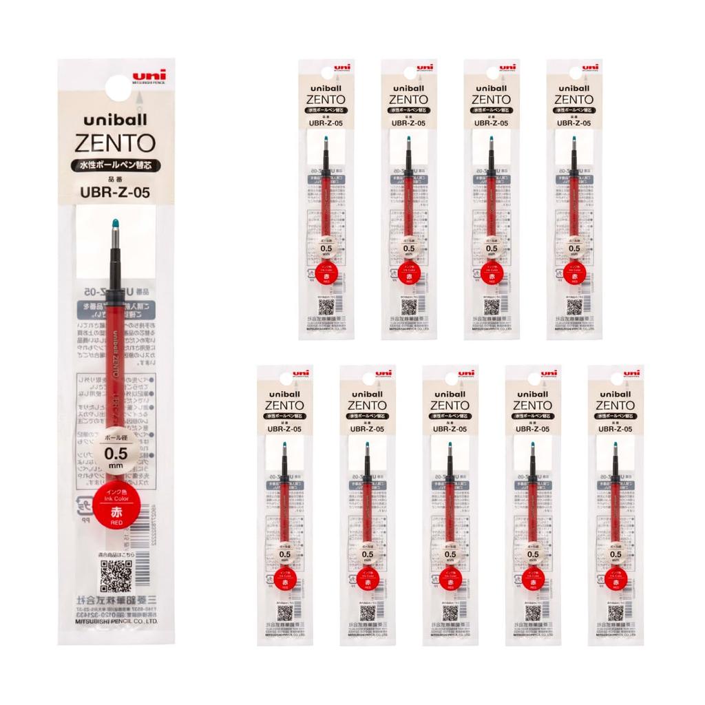 Mitsubishi Pencil Uniball ZENTO Ballpoint Pen Pack of Water-Based Refills, 0.5mm, Red, 10, UBRZ05.15, 10-Pack