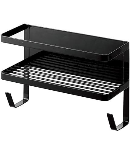 Yamazaki (Yamazaki) Tower Laundry Side Rack with Hose Holder, Magnetic, for Washing Machine Side, Black, Approx. W28 X D12 X H18.5cm, 4769, for Water