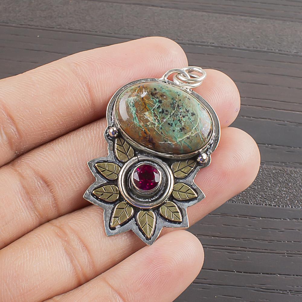 Natural Azurite Gemstone 925 Sterling Silver Jewelry Designer Pendant 1.64" AJP-2149