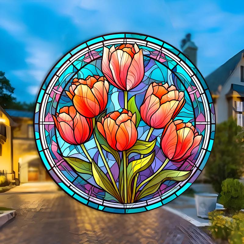 2D Flat Tulips and Roses Flower Acrylic Decoration Sign, Home Decor Plaque Hanging Wall Art Decorative Garden Decoration for Room Door Signs Hanging S