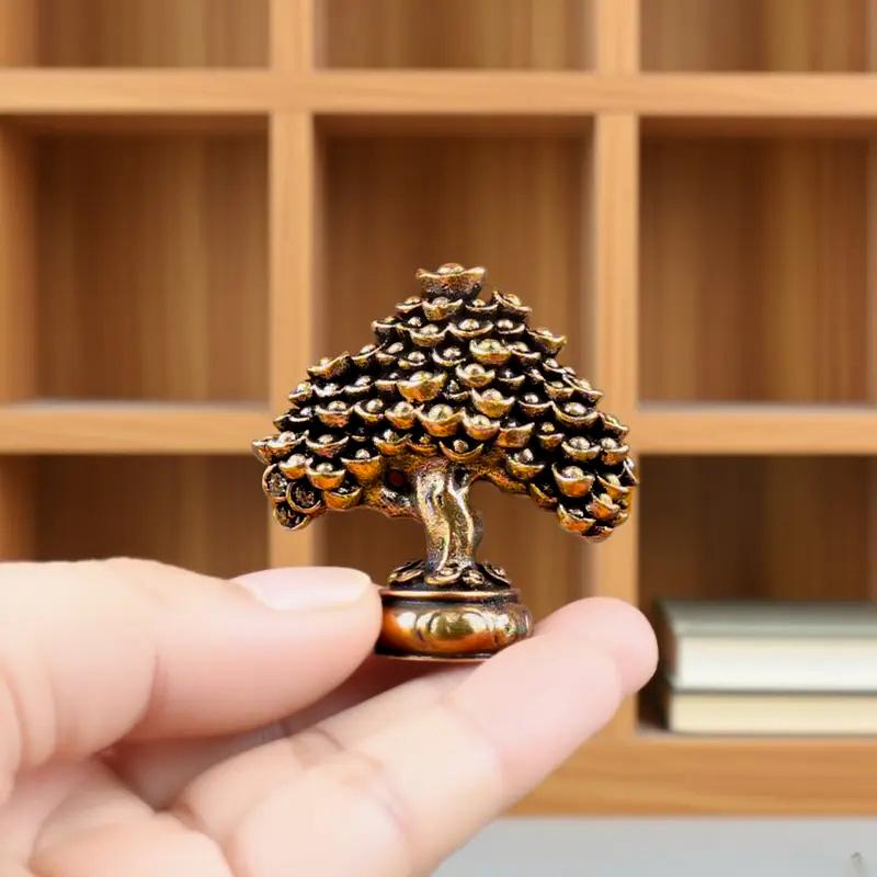 Brass Chinese Wealth Tree Feng Shui Figurines Money Tree Statue Fortune Housewarming Gift Home Office Decor Desktop Ornament