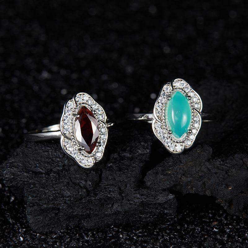 Xiaohongshu Recommends Retro Mintufeng Colored Treasure Ring S925 Inlaid With Natural Garnet Australian Jade Ring For Women