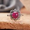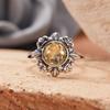 Vintage Hollow Pattern Thai Silver Ring Women'S S925 Sterling Silver Inlaid With Natural Jasper Topaz Gemstone Index Finger Ring